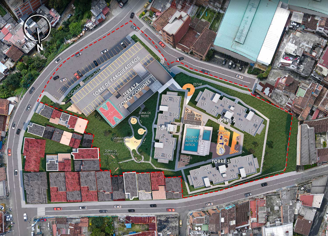 Gimnasio semi dotado, gimnasio al aire libre, salón social, piscina adultos y niños, turco, zona de BBQ, locales comerciales, salón de bienestar (yoga), zona de estar, salón de fiesta para niños, gran parque infantil y zona de trote.Descripción de parqueaderos: