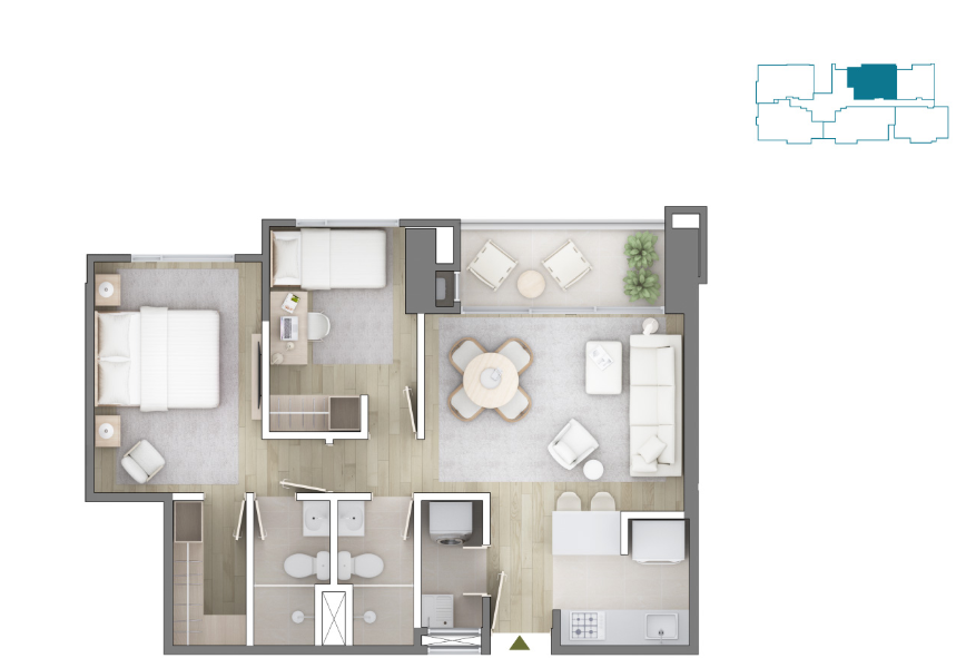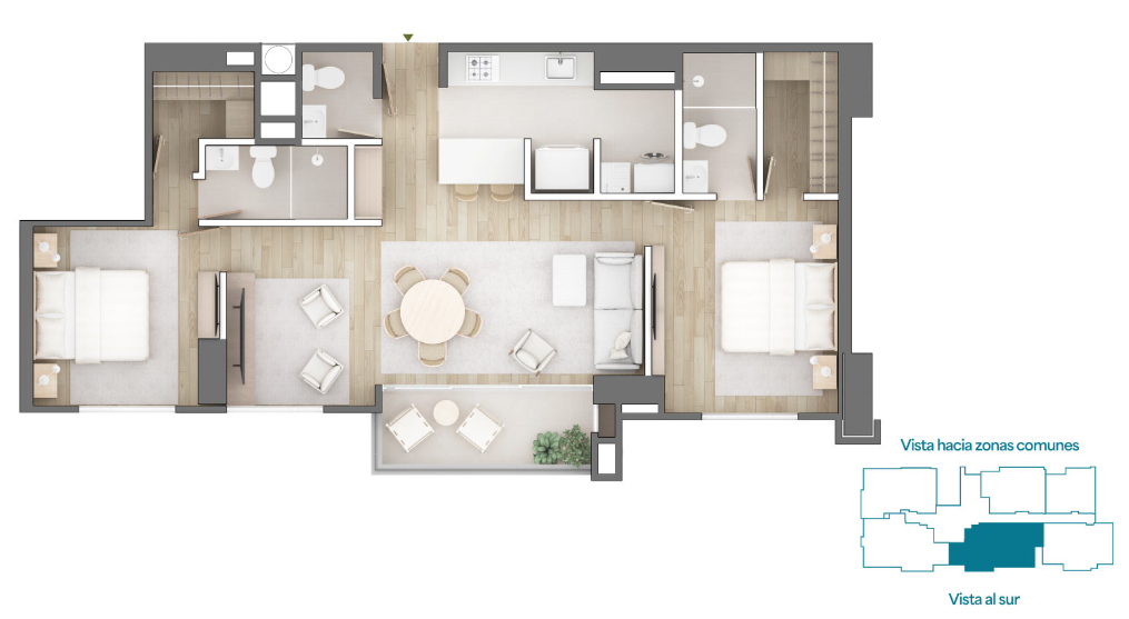 - Info Adicional: Apartamentos con 2 y 3 habitaciones
