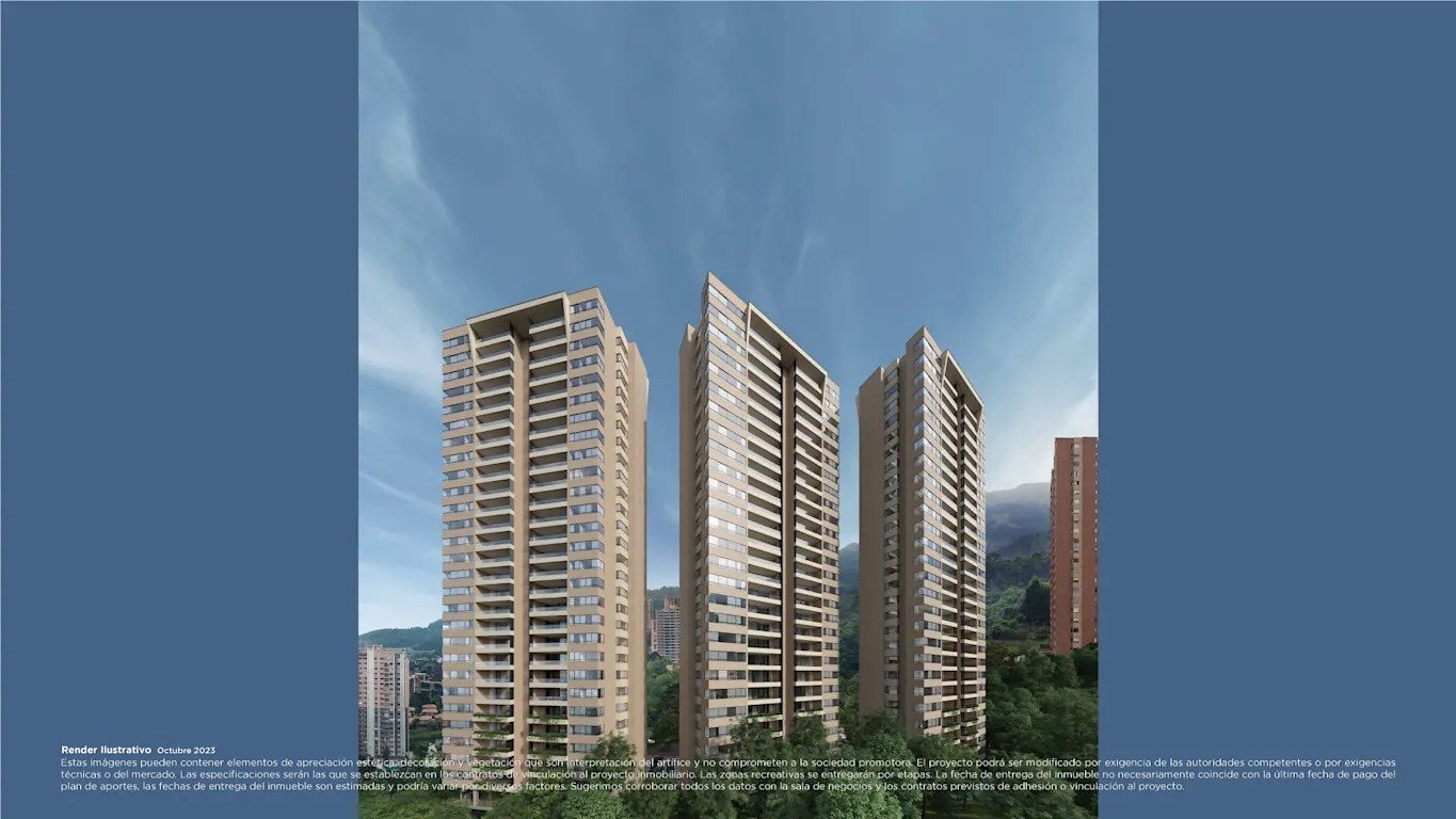 Proyecto familiar conformado por 3 torres con 2 apartamentos y 3 ascensores por piso, con ubicación estratégica en una de las zonas más exclusivas de Medellín, cerca de centros comerciales, restaurantes y servicios financieros.Los apartamentos tienen áreas desde 230 m² hasta 286 m² y pueden contar con 3 o 4 alcobas, 4 baños, 3 parqueaderos y 2 cuartos útiles.