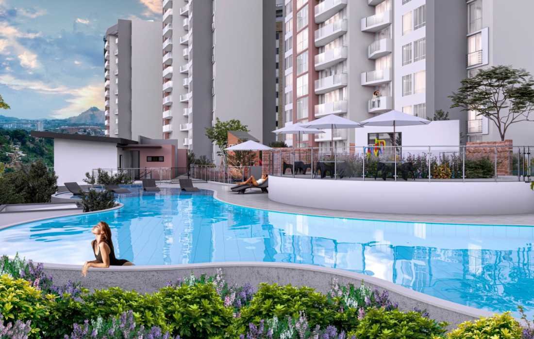 - Amenidades: Seguridad, Salón yoga, Cuarto de basuras, Gym, Salón comunal, Coworking, Piscina, Zona BBQ, Cancha múltiple, Parque de mascotas,Zonas húmedas