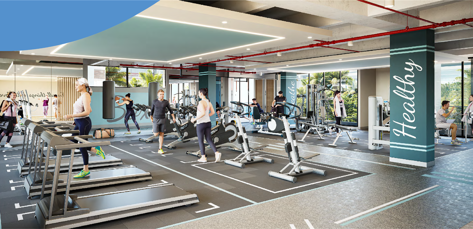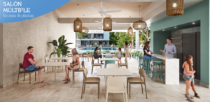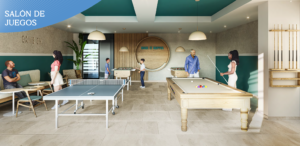 - Amenidades: Lobby y Recepción, Administración, Salón social, Coworking, Salón de juegos, Plazoleta, Club de playa, Juegos infantiles, Terraza con BBQ, Piscina de nado y relajación, Piscina de niños, Sauna y Turco, Jacuzzi, Gimnasio cubierto.