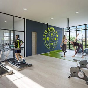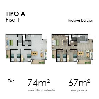 - Amenidades: • Car lobby • Lobby • Local comercial • Salón social • Salón de juegos • Gimnasio • Piscina climatizada • Terraza BBQ • Cancha múltiple • Juegos para niños